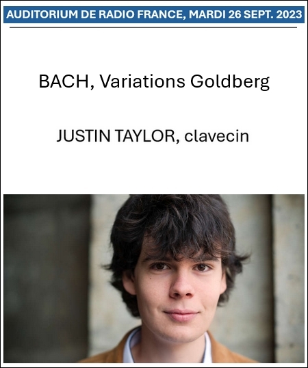 Public conquis ce soir à l’Auditorium de Radio France après ces exigeantes Variations Goldberg par un jeune magicien nommé Justin Taylor. Pas moins de trois bis : Bach / Marcello (andante) ; sonate en si mineur de Scarlatti ; Prélude mythique.