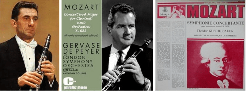Cette symphonie concertante, là encore, est inséparable de la découverte que j’en ai faite dans l’enfance, à travers l’enregistrement qui à vrai dire en est le sommet. Ne voyez pas là un lien de cause à effet, le souvenir premier et le jugement esthétique. Car je pourrais entrer dans les détails pour le prouver, mais ce serait certainement rébarbatif. Toutes les interprétations que j’ai pu en trouver par la suite n’égalent pas la finesse, la minutie, l’énergie, dues à la technique impressionnante d’un chef mozartien exceptionnel, Theodor Guschlbauer. L’enregistrement donc, où nous retrouvons donc un certain Jacques Lancelot à la clarinette : Pierre Pierlot (hautbois), Jacques Lancelot (clarinette), Georges Barboteu (cor), Paul Hongne (basson). Et l’orchestre, je ne l’ai pas nommé, est sans doute l’équivalent de ce qu’était l’orchestre de Mannheim au XVIIIe siècle : l’orchestre symphonique de Bamberg, qui enregistra tant de merveilles de Mozart, qu’il s’est presque identifié à la subtilité mozartienne.