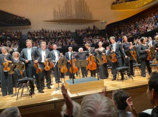 Lors de l’un des rappels, il est à ce titre révélateur de voir Simon Rattle PARMI les musiciens et non pas en surplomb (je diffuse ci-dessous l’une des photos que j’ai pu prendre lors du quart d’heure de rappel.)